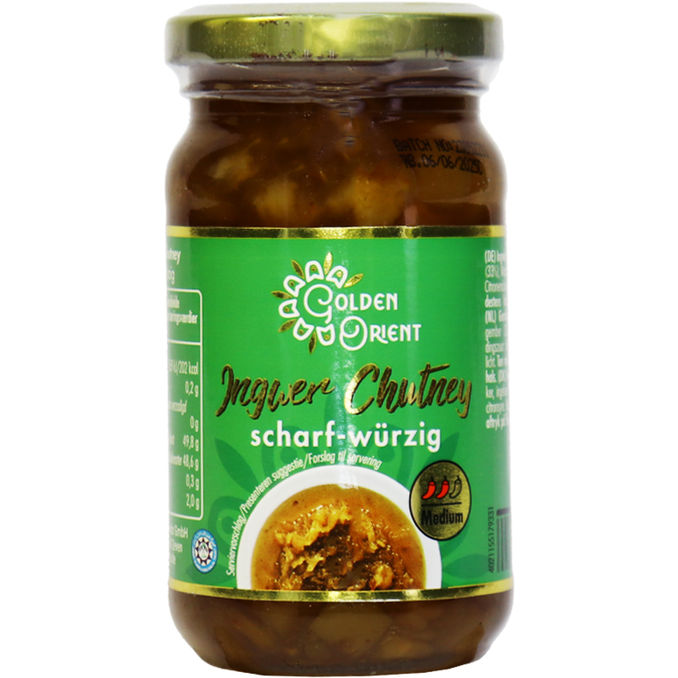 Entdecke das würzige Ingwer Chutney von Golden Orient! Perfekt zu Fleisch, Käse oder als Dip – der süß-scharfe Geschmack verleiht jedem Gericht das gewisse Etwas. Hol dir das exotische Chutney und bring mit einem Löffelchen frischen Ingwer-Genuss auf deinen Teller!
