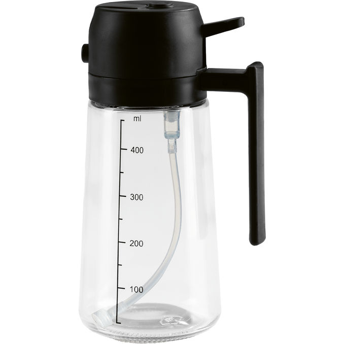 Sprühen oder Gießen? Du hast die Wahl! Dieser schwarze 470ml-Helfer dosiert Öl präzise für Pfanne oder Salat. Perfekt für deine Küche! 🍳🥗🖤